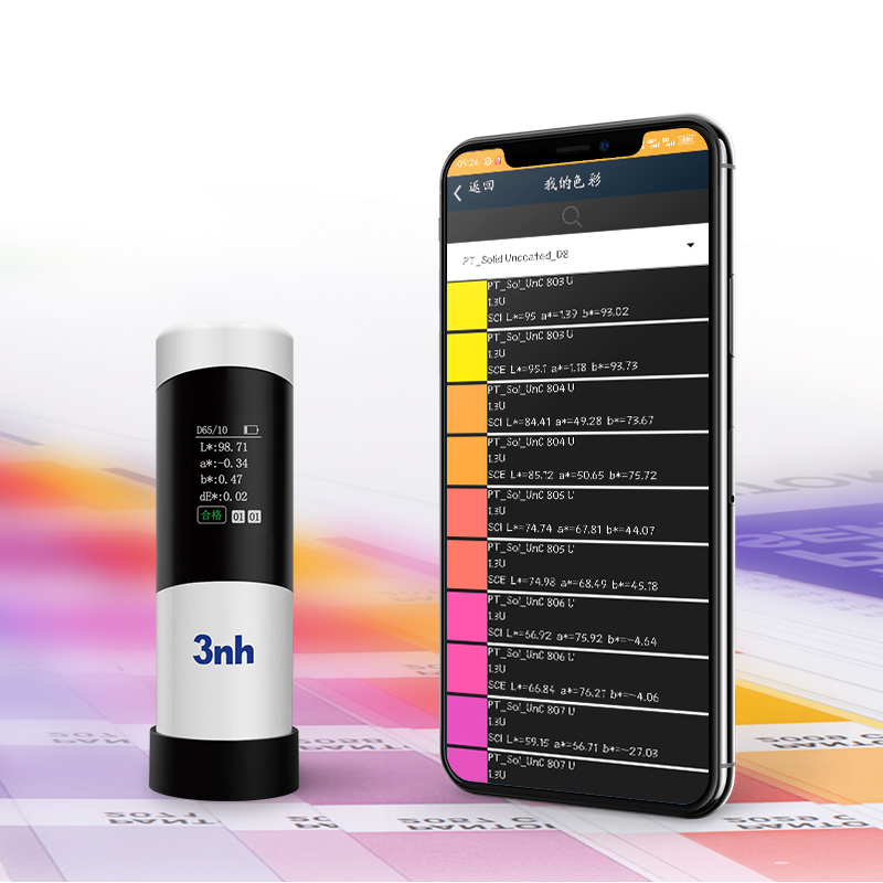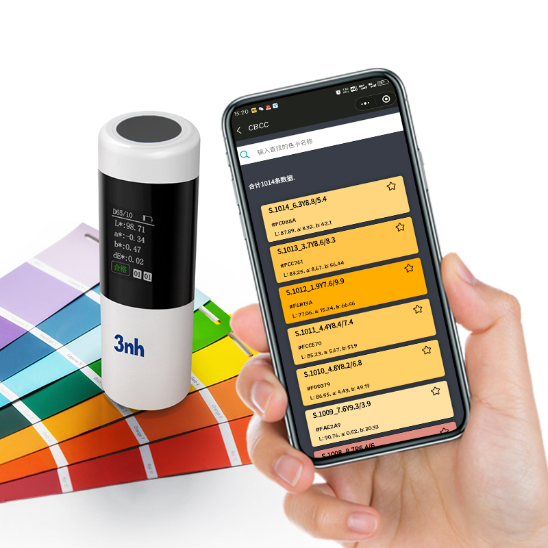 用于塑膠電子、油漆涂料、紡織服裝印染、陶瓷等行業色差品質管控。 體積小巧、攜帶方便。通過手機APP查找色卡,進行多種功能擴展 |